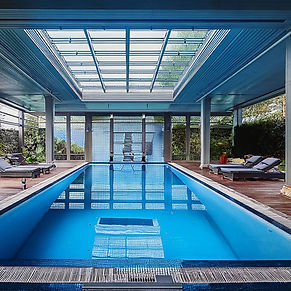 Design of indoor swimming pools is very different from that of outdoor pools as indoor swimming pools are not subject to the fluctuations in day and night temperatures but they do require room ventilation to control humidity caused by the large amount of evaporation.